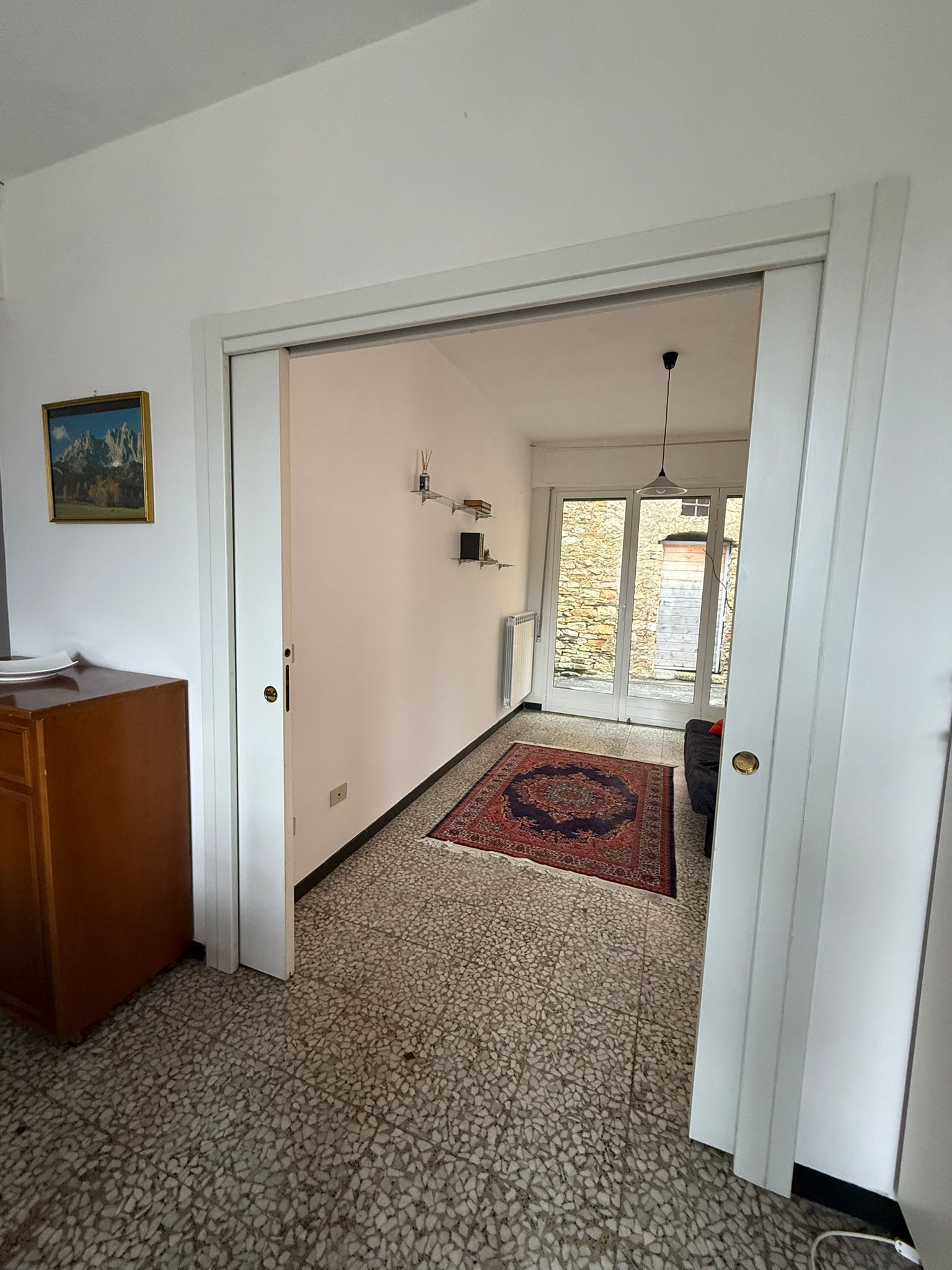 Costa Carnara ist eine kleine, ruhige und sonnige Fraktion der Gemeinde Dolcedo. Das Haus befindet sich in erhöhter Lage in einer Gasse dieses charmanten Dorfes. Die Wohnung liegt im Erdgeschoss und bietet eine gut durchdachte Wohnfläche.